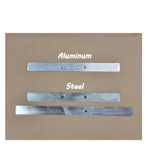 We offer aluminum (lightweight) in 16" length, and 2 different lengths (16" and 20") in zinc-coated steel. These 3 options add from 4 to 15 pounds to the weight of a full set (see chart below).